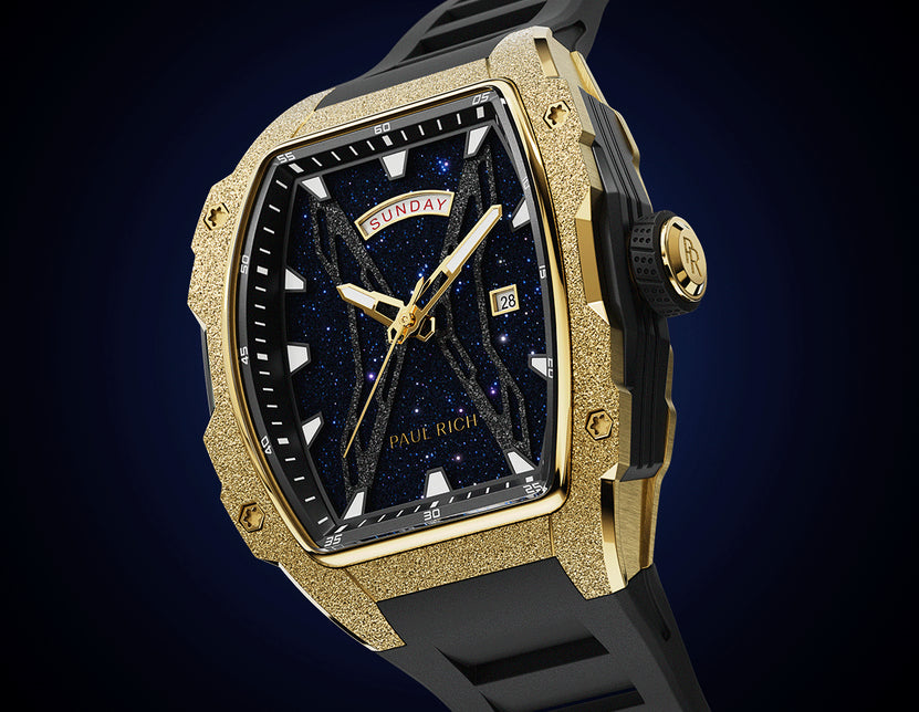 In an industry deeply rooted in tradition, the Astro Collection's revolutionary frosted tonneau case represents a significant breakthrough, challenging the status quo and setting Paul Rich apart from competition. Crafting the distinctive frosted finish on the curved tonneau case of the Astro required a delicate fusion of artistry and precision. Our artisans meticulously applied specialized techniques to ensure a consistent, seamless texture across the case. This frosted texture beautifully diffuses light, creating a shimmering, soft glow that dances along its curves.