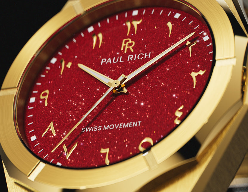 Descubra la fusión de la elegancia cósmica y la herencia árabe con la edición árabe especial Frosted Star Dust de Paul Rich. Este lujoso reloj presenta una esfera con temática galáctica y números arábigos, que simbolizan las invaluables contribuciones del mundo árabe a las matemáticas y la astronomía. Revestido de acero inoxidable robusto, el reloj combina durabilidad con un acabado esmerilado brillante que recuerda a un cielo nocturno iluminado por las estrellas. Más que un reloj, es un testimonio portátil de la grandeza de la cultura árabe, que combina estilo, historia y orgullo en cada detalle. Lleve una pieza de herencia árabe en su muñeca y navegue su día con este lujoso reloj.