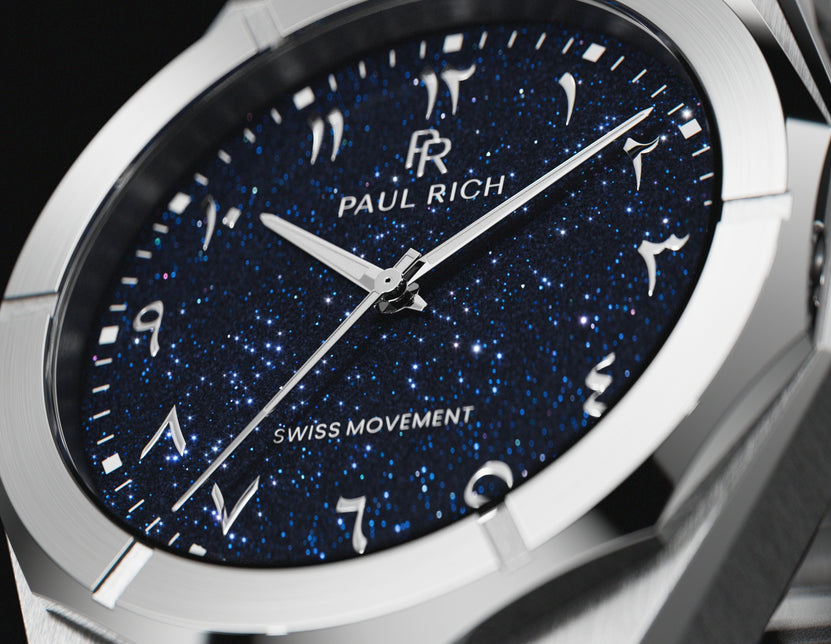Descubra la fusión de la elegancia cósmica y la herencia árabe con la edición árabe especial Frosted Star Dust de Paul Rich. Este lujoso reloj presenta una esfera con temática galáctica y números arábigos, que simbolizan las invaluables contribuciones del mundo árabe a las matemáticas y la astronomía. Revestido de acero inoxidable robusto, el reloj combina durabilidad con un acabado esmerilado brillante que recuerda a un cielo nocturno iluminado por las estrellas. Más que un reloj, es un testimonio portátil de la grandeza de la cultura árabe, que combina estilo, historia y orgullo en cada detalle. Lleve una pieza de herencia árabe en su muñeca y navegue su día con este lujoso reloj.