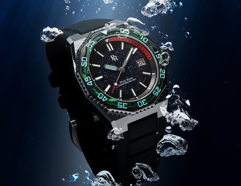 Built for those who go deeper. The Aquacarbon Pro isn’t just a dive watch—it’s precision in motion. Forged carbon fiber that lights up the dark, a mesmerizing aventurine dial, and water resistance down to 200 meters. Choose between the reliable quartz Swiss Ronda 505 or the powerful Seiko NH35A automatic. This isn’t just about time; it’s about taking control. Conquer the depths with accuracy and confidence.